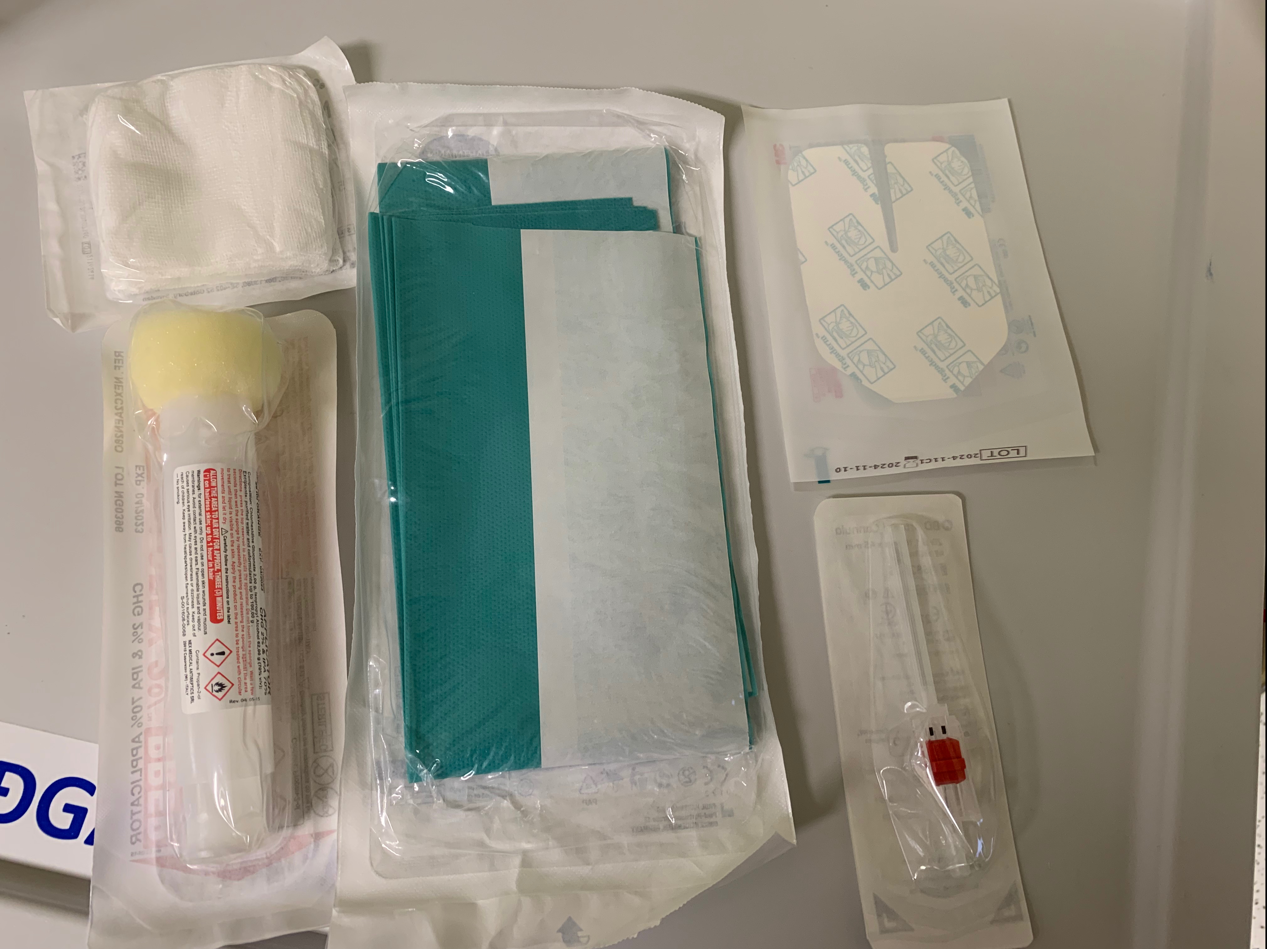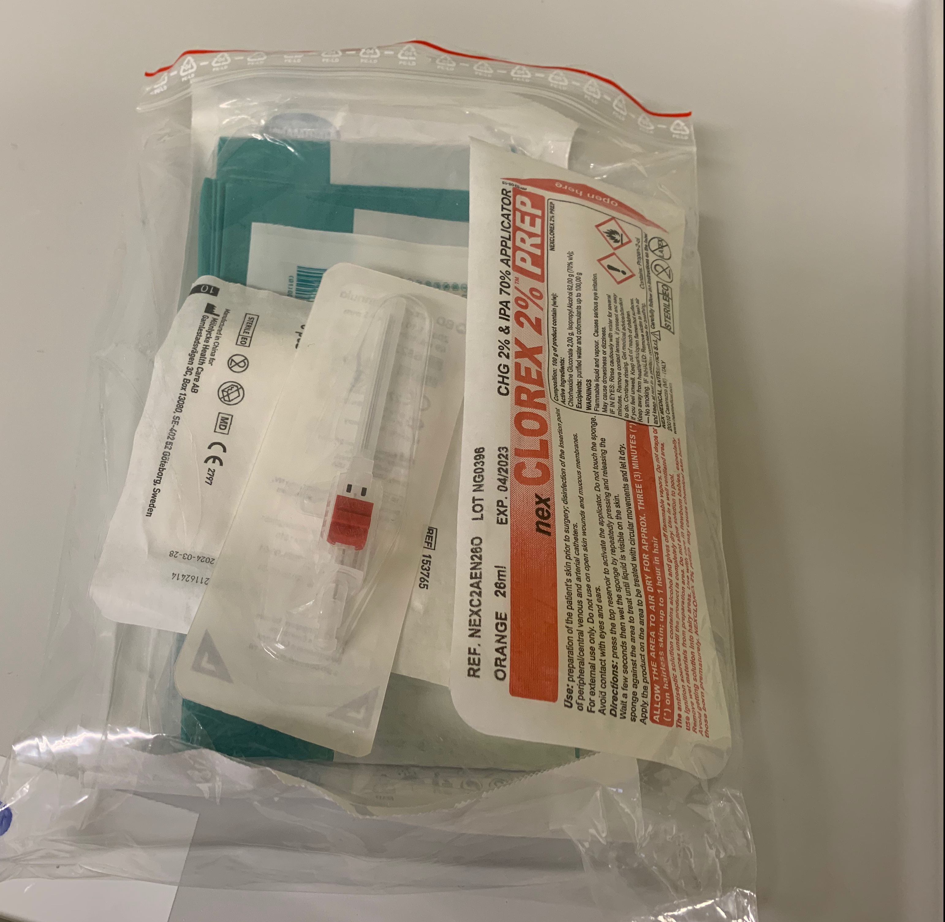 - One Tegaderm (occlusive dressing to cover the catheter)