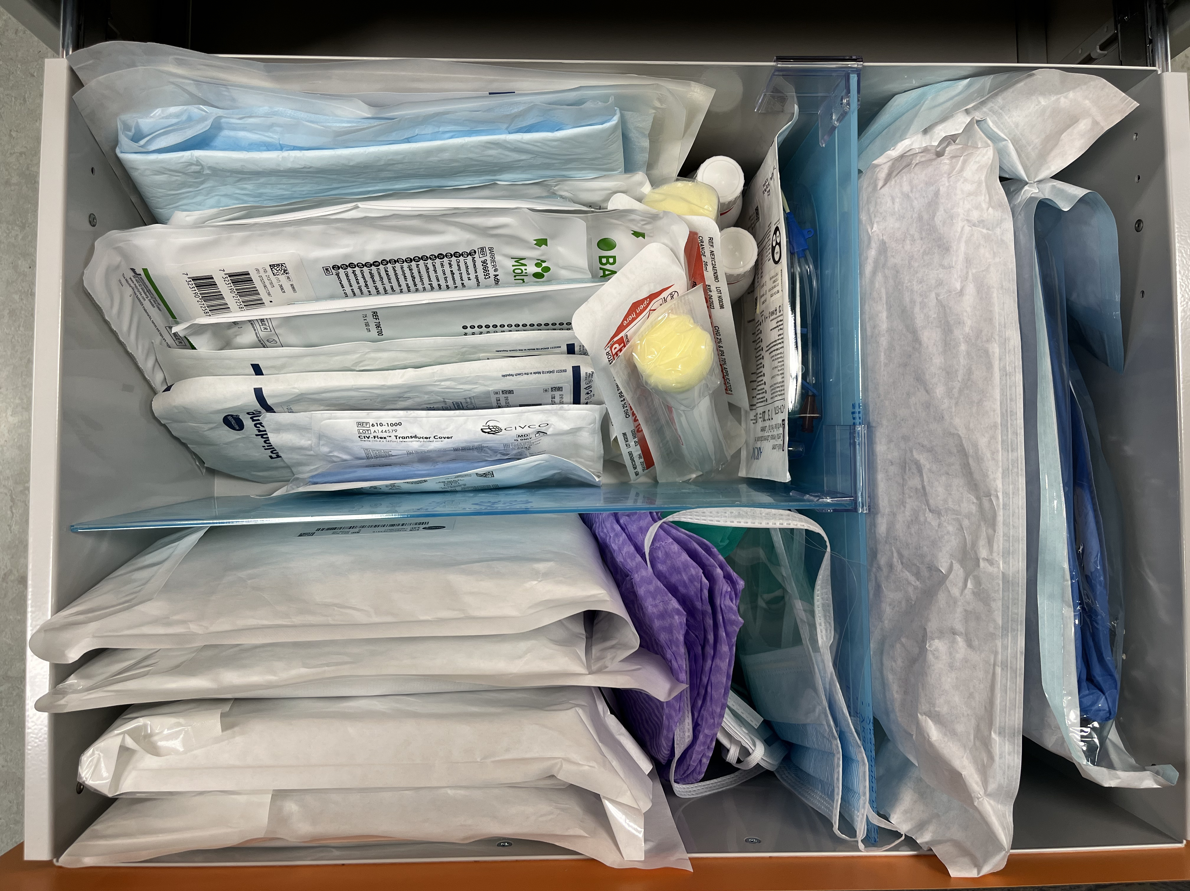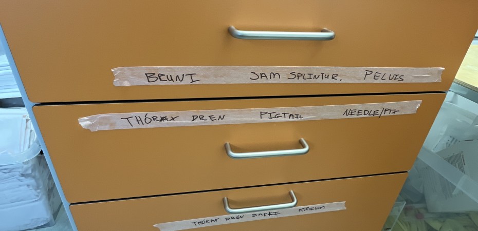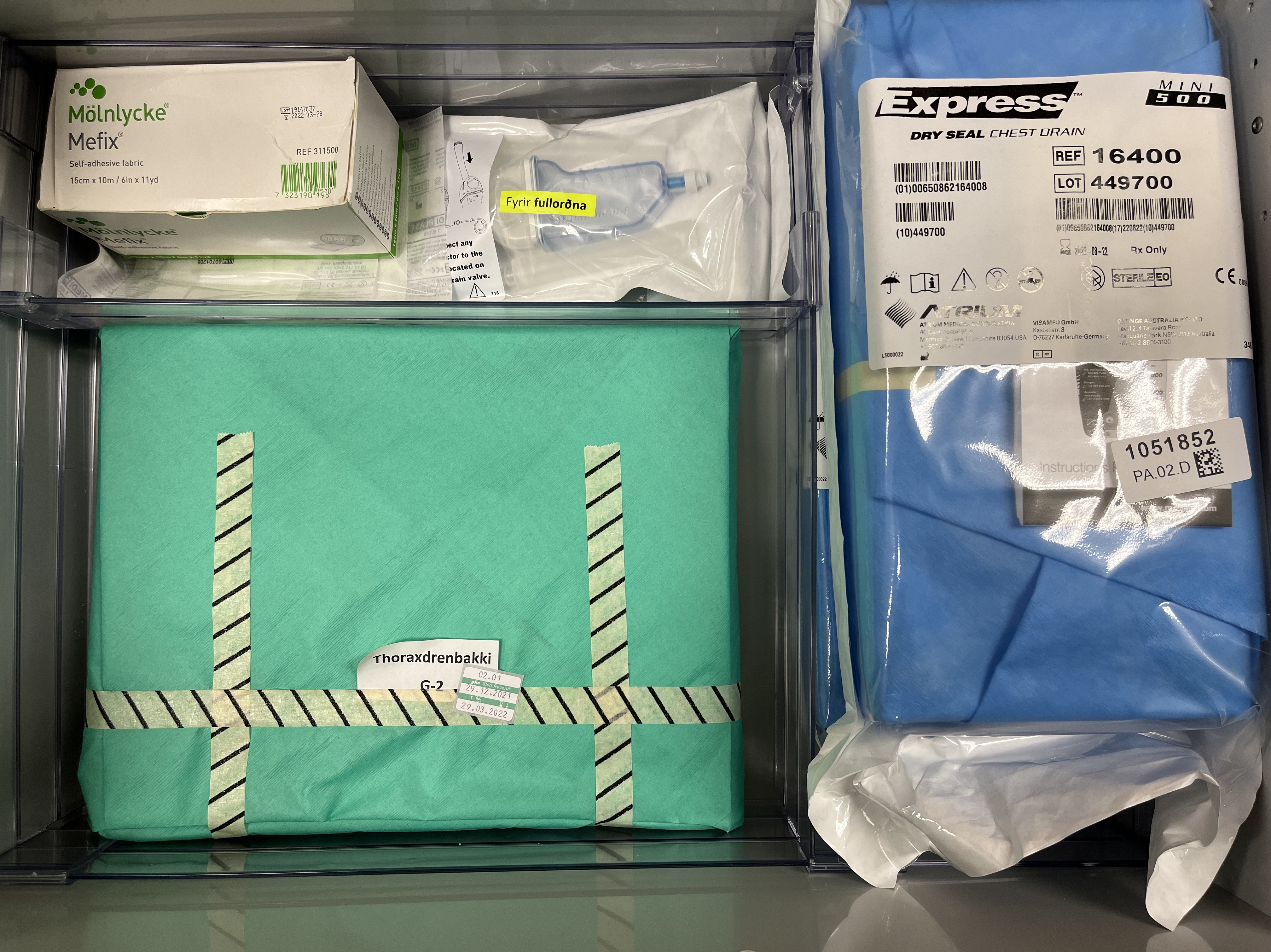 We decided not to keep Thoracotomy kit in because they are quite large, and mostly because… we are in Iceland (not much penetrating traumatic cardiac arrest going on here). You can still find them in the Trauma corner of the A:Akút. We will keep trauma shelf in there for now.